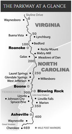 As can be seen from the map above, Cherokee, North Carolina is at mile 469 of the Blue Ridge Parkway. Depending on which way you start from, this area is the beginning or end of this famous and iconic roadway. The website for the Blue Ridge Parkway writes, “at the southern entrance/exit to the Blue Ridge Parkway, Cherokee, North Carolina is home of the Eastern Band of Cherokee Indians. You’ll find museums, cultural and family attractions, motels, campgrounds, restaurants, shops, the famous outdoor drama “Unto These Hills,” and Harrah’s Cherokee Casino…” (Blue Ridge Parkway). You can also check out more information on things to do in Cherokee, the gateway of both the Blue Ridge Parkway and Great Smoky Mountains National Park, here.