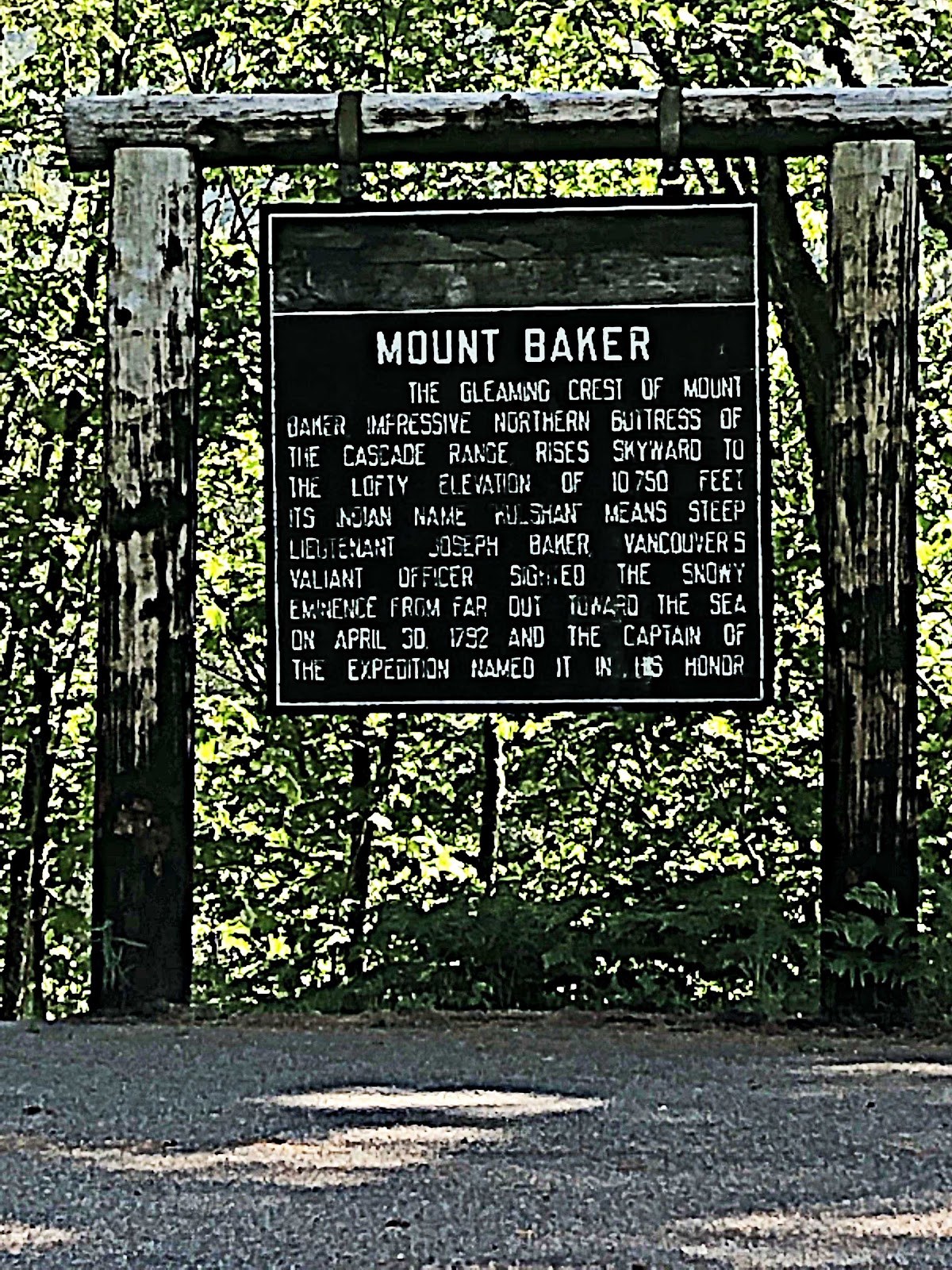 Mt. Shuksan is another scenic peak along our climb. It can be mistaken for Mt. Baker, but just keep in mind that Shuksan is 2 peaks with minimal snow and Baker is one snow covered peak. Also, Shuksan is east and Baker southwest as we climb. Both are visible at the finish - Baker by walking just a bit up the paved trail at the finish of the climb.